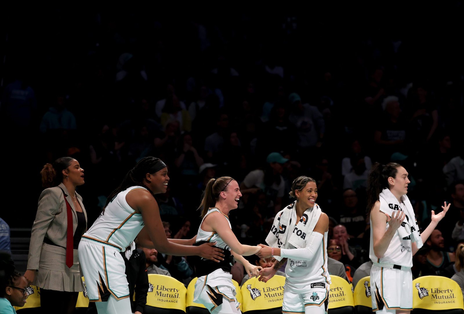This season, getting all three women on court together has been the team’s greatest challenge, and the looming threat that could sink their title defense. Jonquel Jones sprained her ankle in June, leading her to miss 13 games, and Breanna Stewart missed 13 games with a knee injury. The injuries were offset, making any prolonged stretch of gelling as a team with several new faces a challenge. They have clinched for the postseason but sit at fifth, 8.5 games behind the No. 1 seed Minnesota Lynx, the team they beat in last year’s finals. It’s a situation no one is happy about. At practice, Stewie was open about the injuries and their impact. “We’ve been dealing with a lot of adversity, haven’t really been able to kind of find our groove or our stride,” she told me.