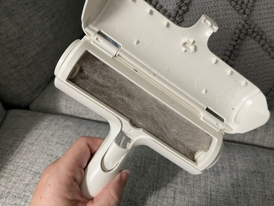 I own this roller and use it DAILY on my comforters! It’s so easy to use and I’m always surprised by how much pet hair is in the chamber when I go to empty it. 🐾 I love that there’s no need to have refills like lint rollers, too! 🙌 – Hip Sidekick, Jessica T.