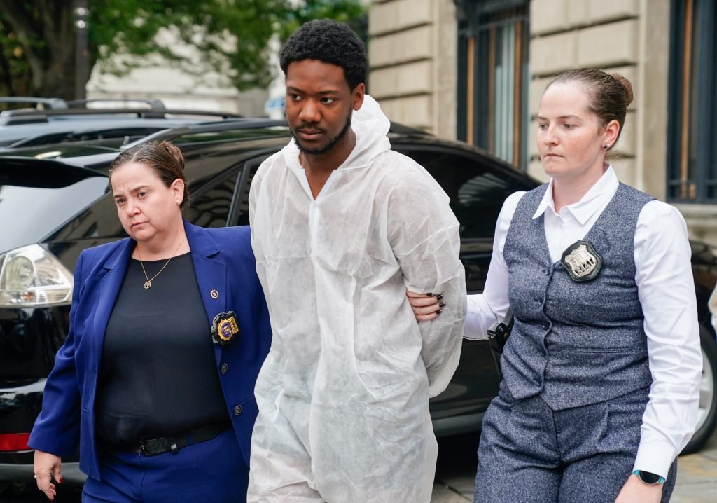 Kenneth Siridoe, 21, is pictured in police custody leaving the NYPD's Bronx Special Victims Unit on Monday, Sept. 29, 2025. (Barry Williams/ New York Daily News)
