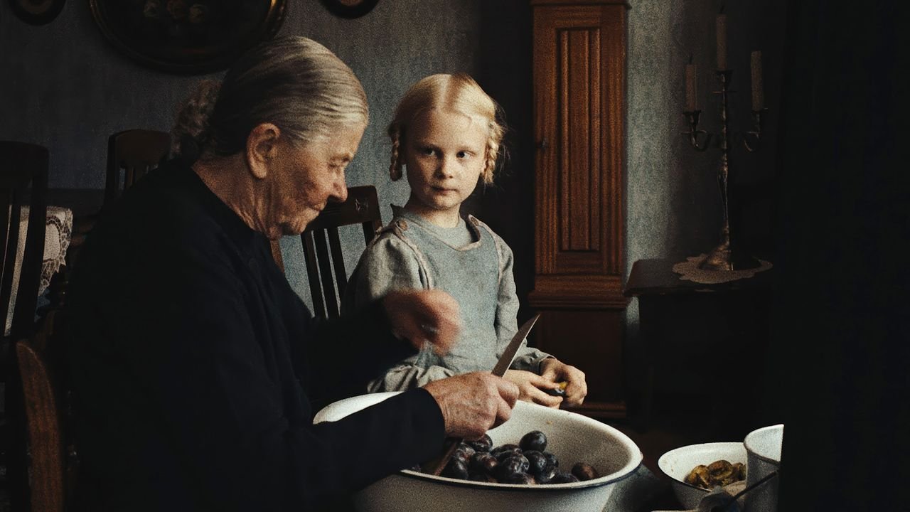 Perhaps that is why “Sound of Falling” so frequently resembles a ghost story—why the farmhouse feels so indelibly haunted, and why the camera seems to drift between rooms and time frames with the whispery grace of an apparition. Schilinski leans into the spookiness. Her film is unapologetically obsessed with death, and it invites us to look, more than once, on the faces and bodies of the dead. The director seems especially fascinated by the early twentieth century’s farewell rituals, suffused with religion and superstition. A deceased great-grandmother has stones placed over her eyes, to ease her timely passage through the afterlife. Alma’s older sister Lia (Greta Krämer), gone far too soon, has her eyes sewn open—and is then posed, sitting upright, for a family photograph.