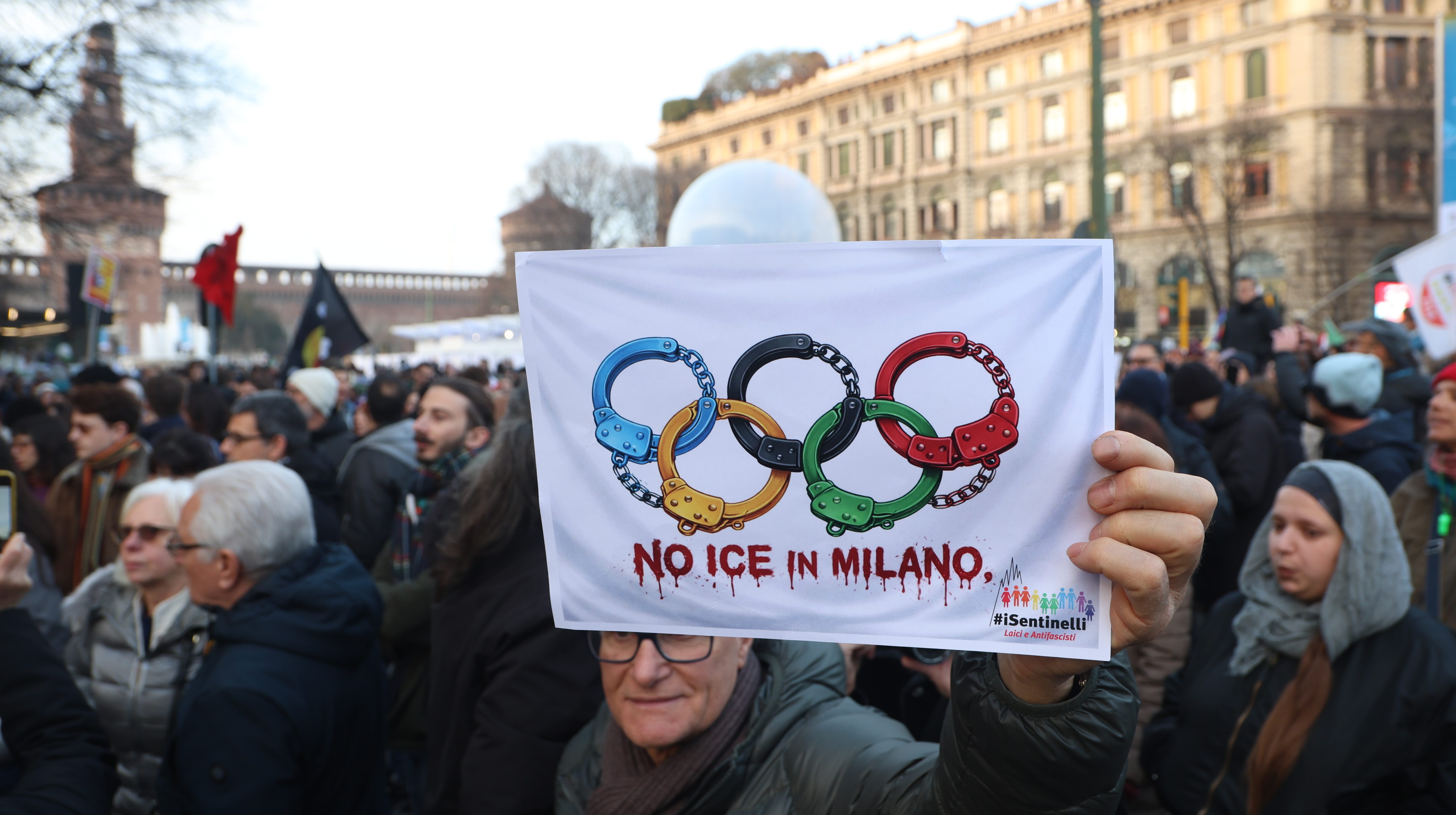 Hundreds of demonstrators gathered Saturday in Milan to protest the deployment of U.S. Immigration and Customs Enforcement agents during the upcoming Winter Olympics, unbothered by the fact that agents would be stationed in a control room and not operating on the streets.