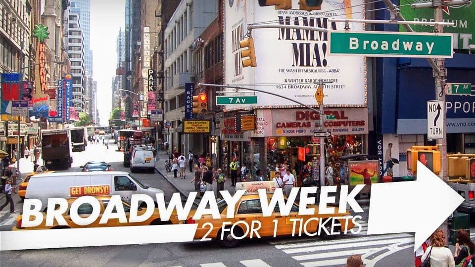 Broadway Week New York City, officially named NYC Broadway Week℠, is a great time to save BIG on the best of Broadway. Get two-for-one tickets to some of the City’s hottest Broadway shows.